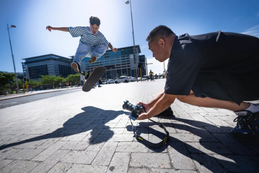 Per congelare l’azione e avere un soggetto nitido, conviene aumenta la velocità dell’otturatore a oltre 1/1000 di secondo, consiglia Little Shao. «Per quanto riguarda l’apertura, a seconda di ciò che si vuole ottenere, fotografare da vicino un soggetto con un obiettivo a focale fissa, con il diaframma completamente aperto, potrebbe essere complicato. I ballerini si muovono rapidamente, quindi potrebbe essere difficile metterli a fuoco», spiega. Per la sua fotografia del ballerino a Città del Capo, Little Shao ha sfruttato il diaframma a f/5.6 per ottenere un’ampia profondità di campo: «Con f/5.6 e priorità di tracciamento 3D, la Nikon Z6III ha messo a fuoco non solo le gambe del ballerino, ma anche il suo viso. È nitidissimo, come potete notare, il che è importante».